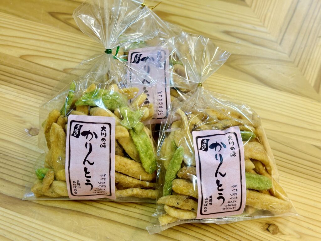 大川村のお母さんらぁが30年来手作りしゆうかりんとうながよ~。数に限りもあって通販やネットじゃ買えん幻の味ながやき。地元の“村のえき「結いの里」”にて不定期で販売しゆうき、出会えたら買うてみてや。