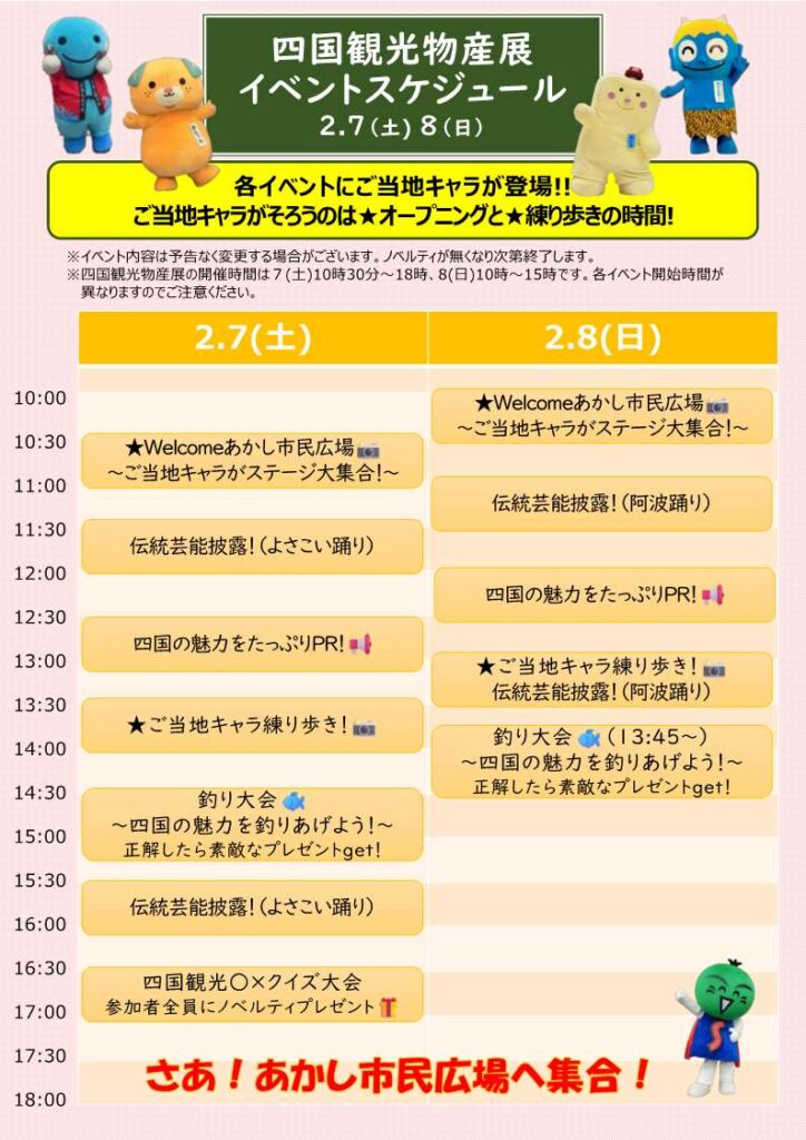 2月7日(土)、8日(日)にJR明石駅前の「パピオスあかし」2階あかし市民広場で「四国観光物産展」が開催されます!