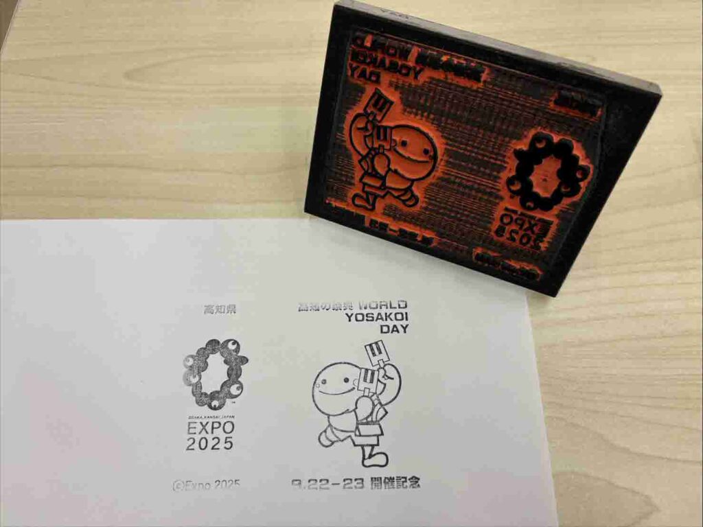 関西・大阪万博で昨年8月22日、23日に開催したイベント『WORLD YOSAKOI DAY』(関西・大阪万博×くろしおくん)限定スタンプが、今、高知県大阪事務所で押印できるがやき!